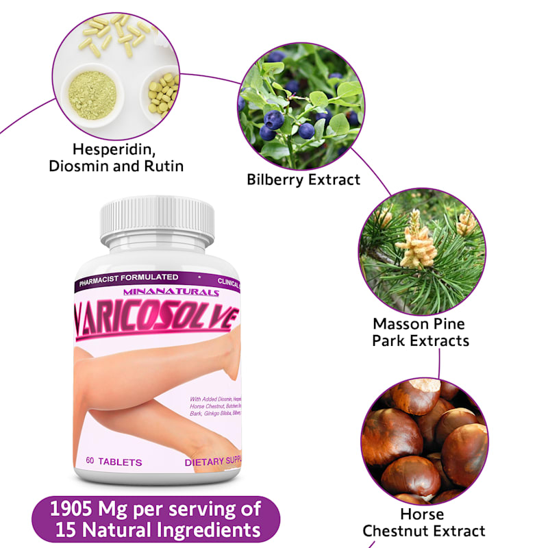 The natural approach towards Varicose Vein and Spider Vein problems. The ingredients work to improve the circulation and to restore the vein wall integrity. It helps reduce leg swelling and decrease pain.